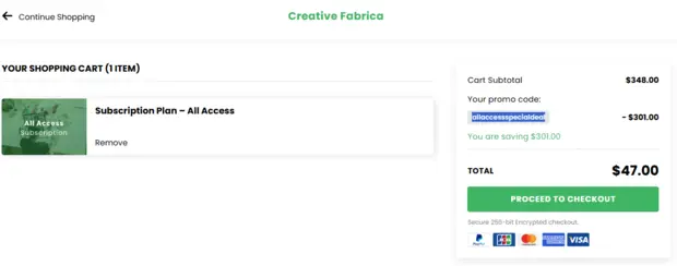 Additional tip: You should add the Creative Fabrica product(s) and service(s) that you want on your cart and leave for few days. They might send you exclusive discount to callout you finish purchase.