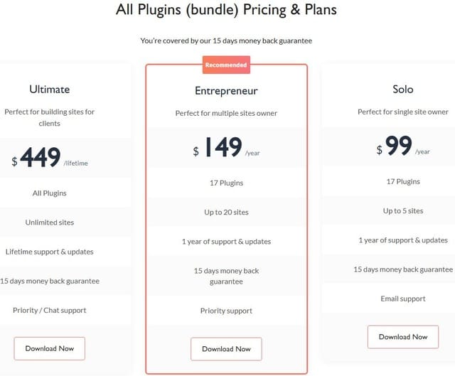 - Ultimate: $2499 – Provides lifetime access to all plugins and unlimited site usage