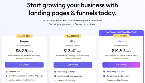 Get the OptimizePress Suite Starter for only $199 instead of $299 as regular price when you choose pay for yearly. Limited time only! Don’t miss the chance Less